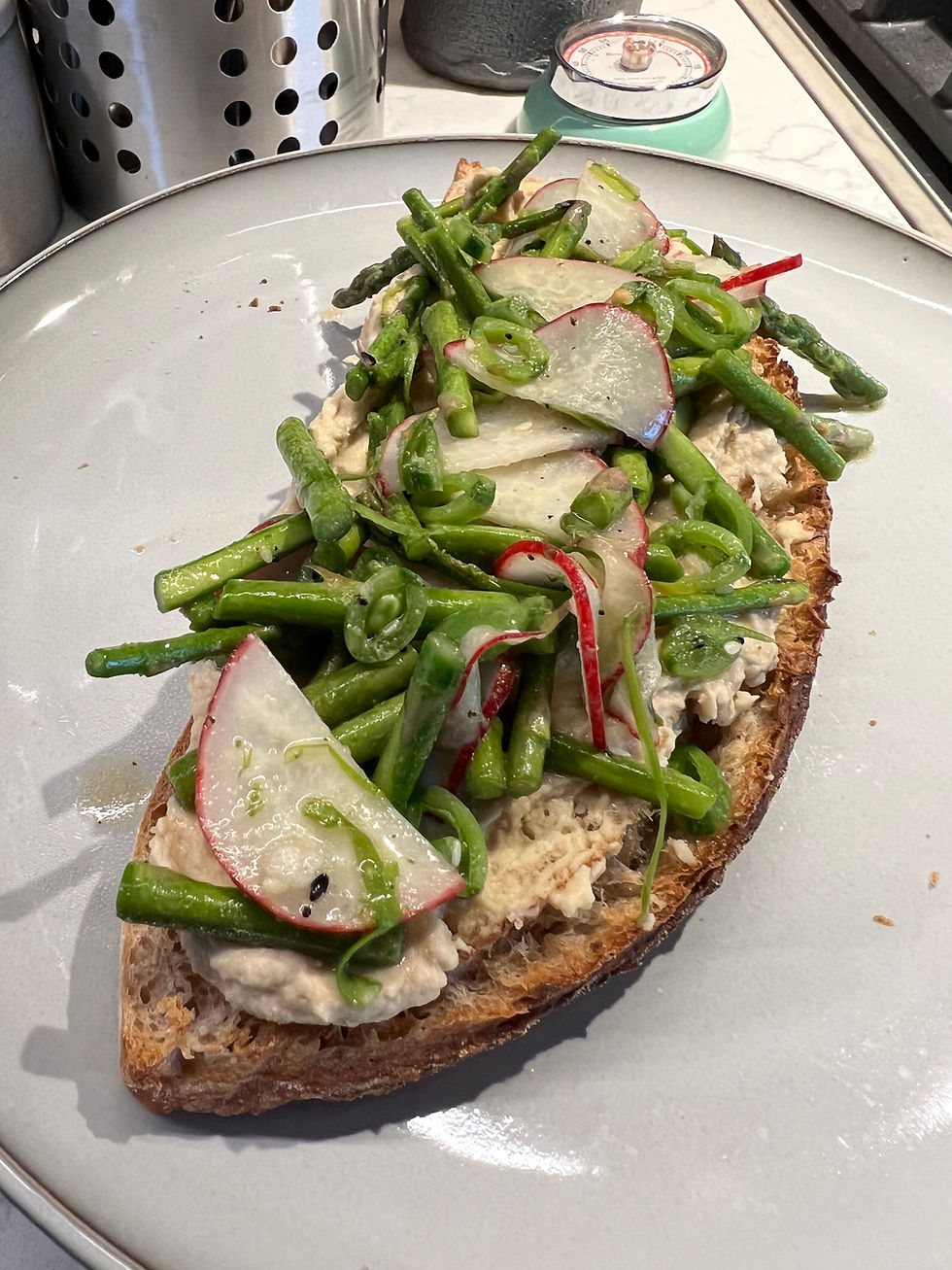 Asparagus Salad and Hummus on Toast